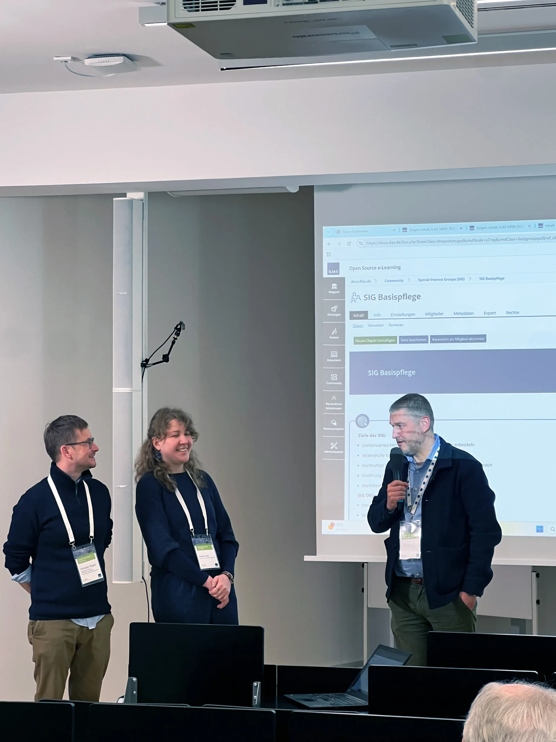 Anschließend berichteten verschiedene Community-Gruppen über ihre Arbeit. Beiträge aus der Security Group, dem Editorial-Team (ILIAS-Hilfe und Handbuch) sowie zur Dokumentation datenschutzrelevanter Aspekte einzelner ILIAS-Komponenten gaben Einblicke in zentrale Themen rund um Sicherheit, Dokumentation und Compliance.