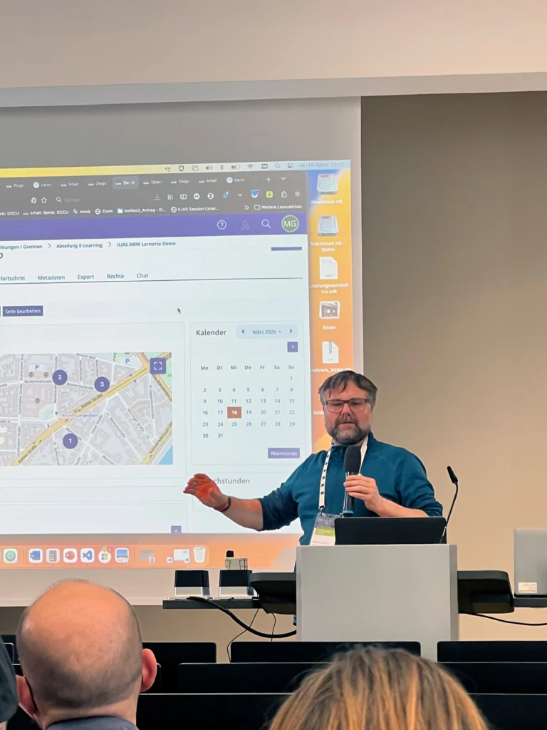 Auch im Bereich Qualitätssicherung kommt KI zum Einsatz: Maximilian Becker (Databay AG) präsentierte Ansätze für automatisierte Testszenarien, mit denen sich neue Releases von ILIAS auf Stabilität und Funktionalität prüfen lassen.
