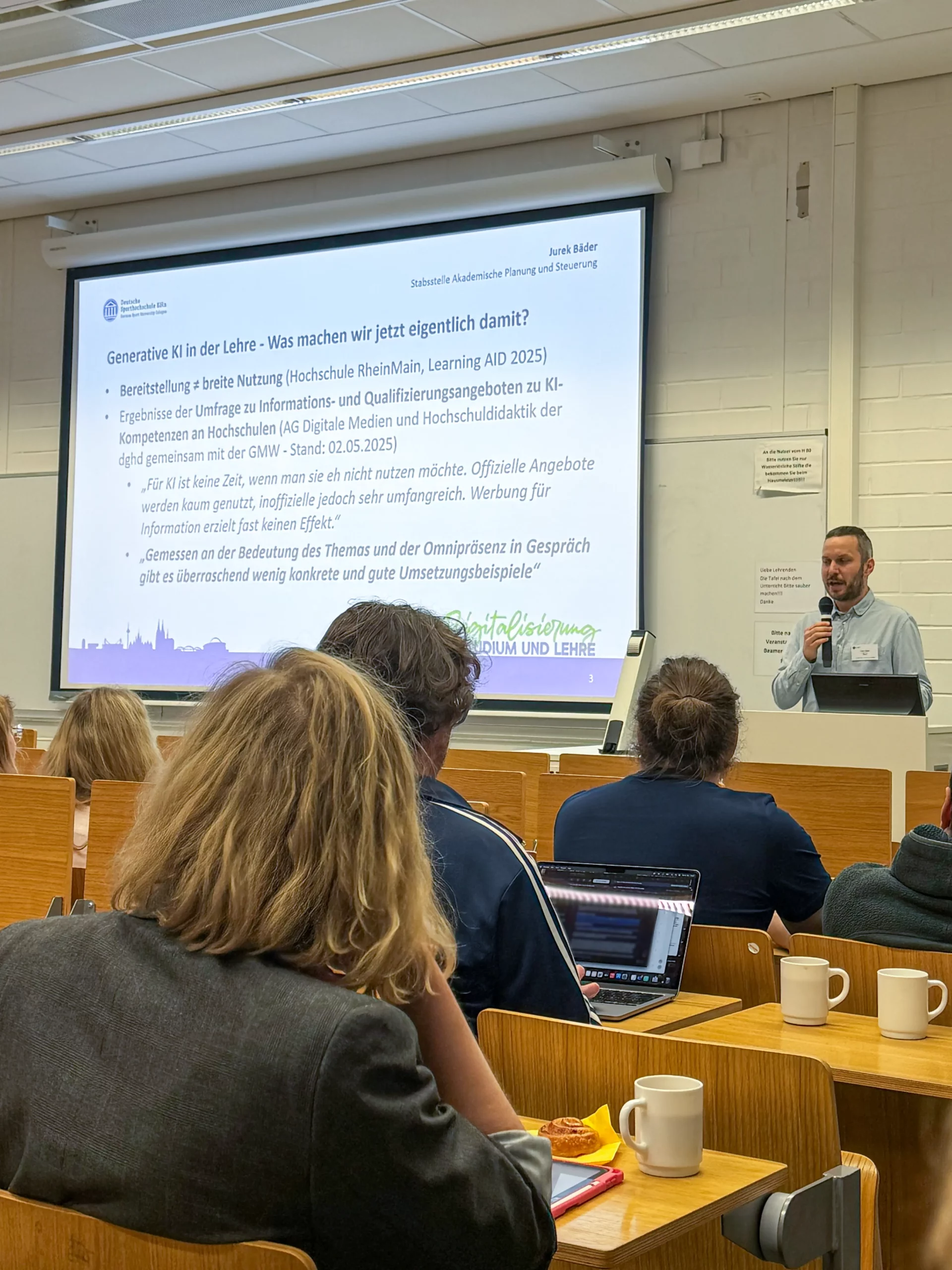 Neben dem Schwerpunktthema Künstliche Intelligenz (KI) bot das Programm spannende Einblicke in Projekte wie STACK.nrw, MIau.nrw und auch über den Tellerrand NRWs hinaus in Initiativen aus Baden-Württemberg. Auch das ILIAS-Kompetenzzentrum der FH Dortmund war mit einem Beitrag vertreten: zum HISinOne-Proxy, einer Lösung zur Verbindung des LMS ILIAS mit dem Campus-Management-System HISinOne.